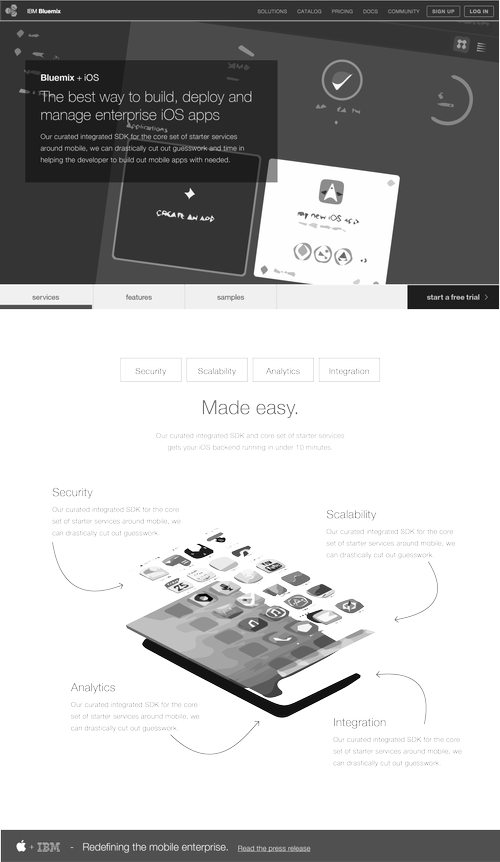Lead a team of designers, researchers and FEDs as part of a larger effort to position IBM MobileFirst and Apple iOS to empower businesses to develop the next generation of enterprise software, for banks, airlines, retailers and healthcare providers. Our team worked to deliver a ecosystem of connected experiences to help users understand the partnership.